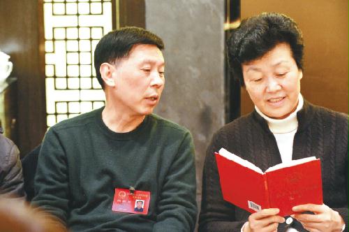 市人大代表在会议间隙学习宪法